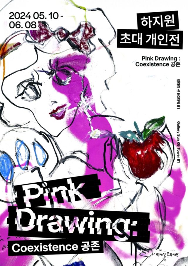 하지원 초대 개인전 ‘핑크 드로잉: 코이그지스턴스 공존’(Pink Drawing : Coexistence 공존)이 오는 10일부터 6월 8일까지 서울 중구 KG타워 지하1층 갤러리선에서 개최된다.