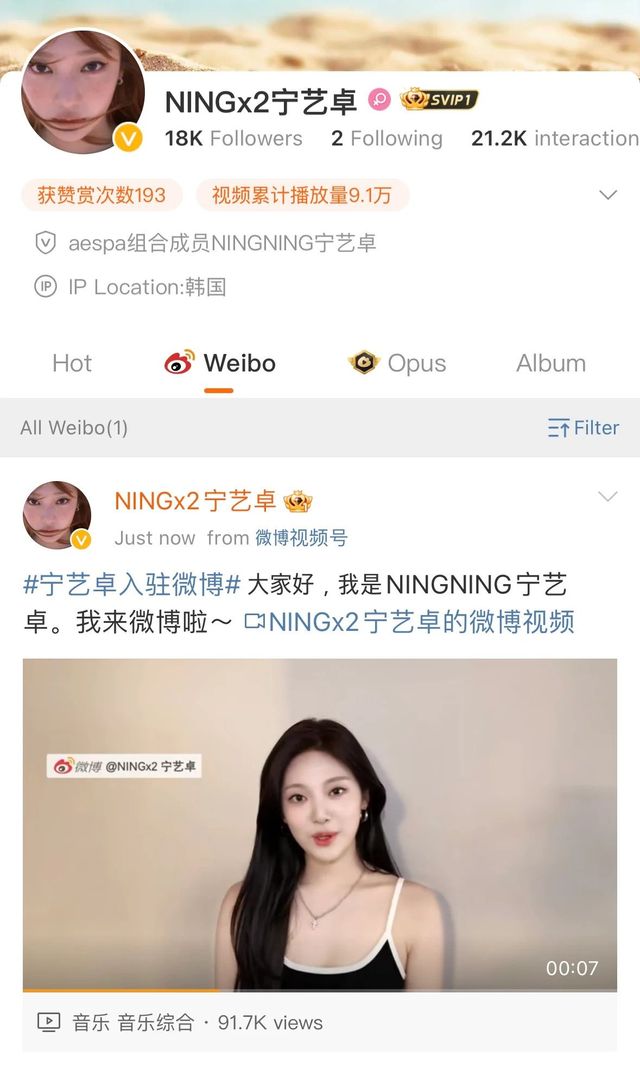 중국멤 닝닝이 개인 웨이보 페이지를 개설함