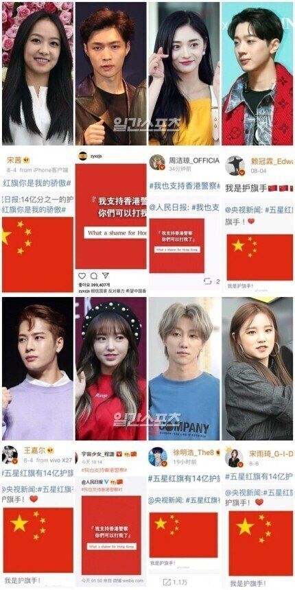 케이팝 그룹 중국멤 중 개인 웨이보 개설한 멤버의 99%는 하나의 중국이나 홍콩 경찰 지지 등