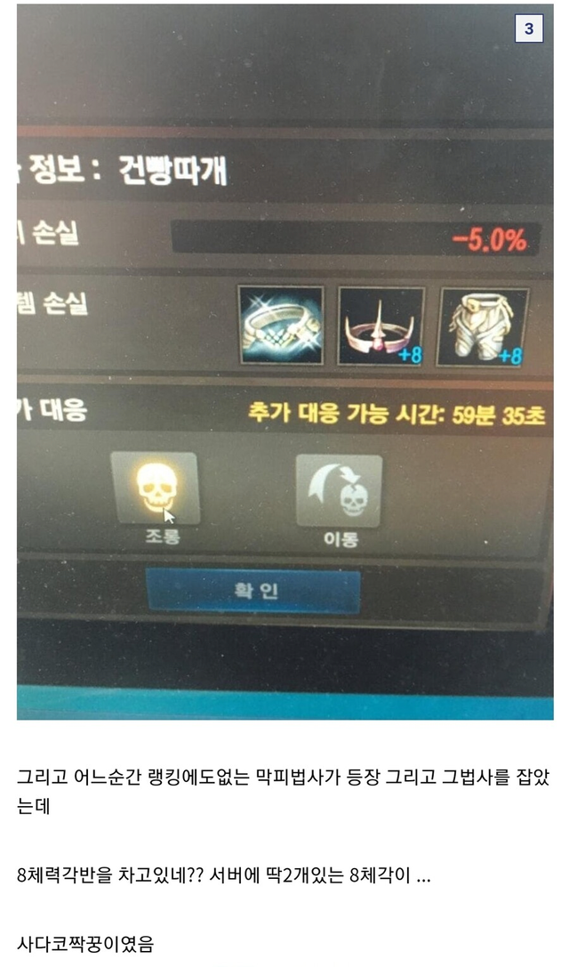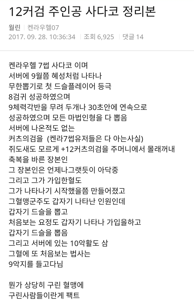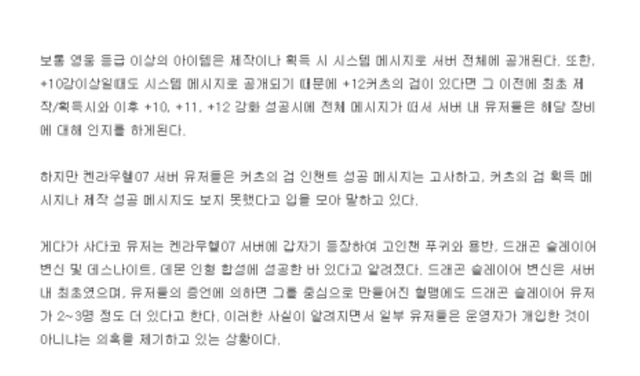 당시 게임 내에서 전설급 아이템인 커츠의 검 12강이 떴다는