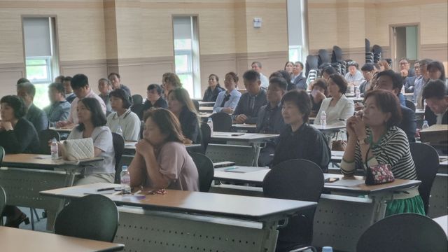 강연이 열린 장흥통합의학컨벤션센터 대강당에는 운영위원 200여명과 각 학교 교장 등이 참석했다.