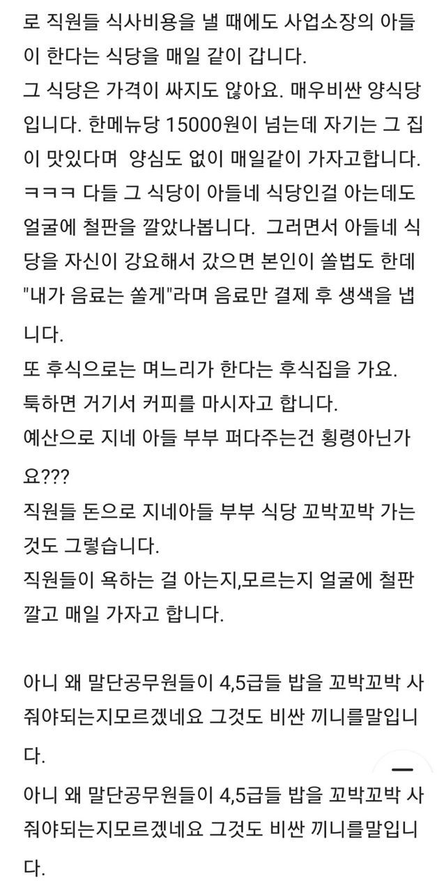 1. 지자체 고위 공무원의 식사를 말단 공무원들이 다사줌