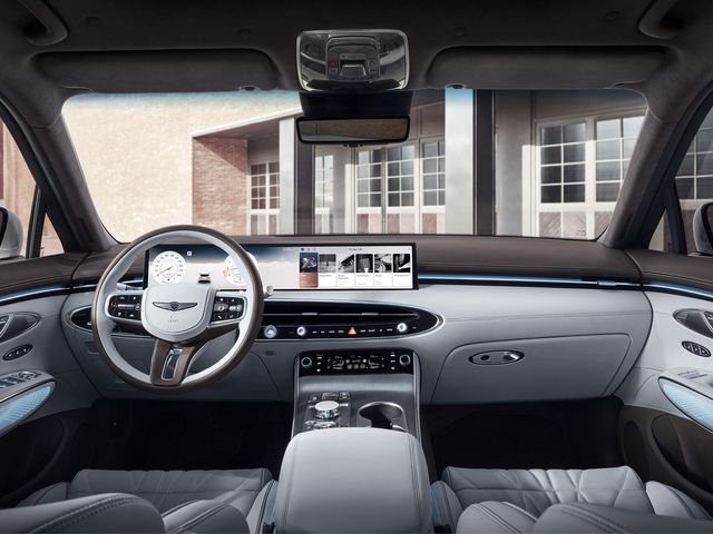 제네시스는 GV70에 클러스터와 인포테인먼트 시스템을 하나로 합친 27인치 통합형 와이드 디스플레이와 터치 타입 공조 조작계를 탑재해 진보된 느낌을 부각했다.