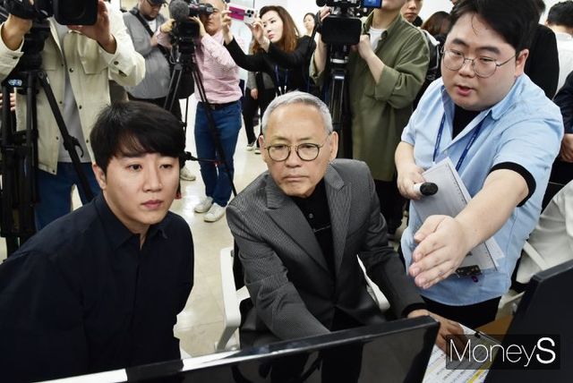 ▲ 확률형 아이템 정보공개 모니터링 시연하는 유인촌 문체부 장관과 방송인 홍진호(전 프로게이머)