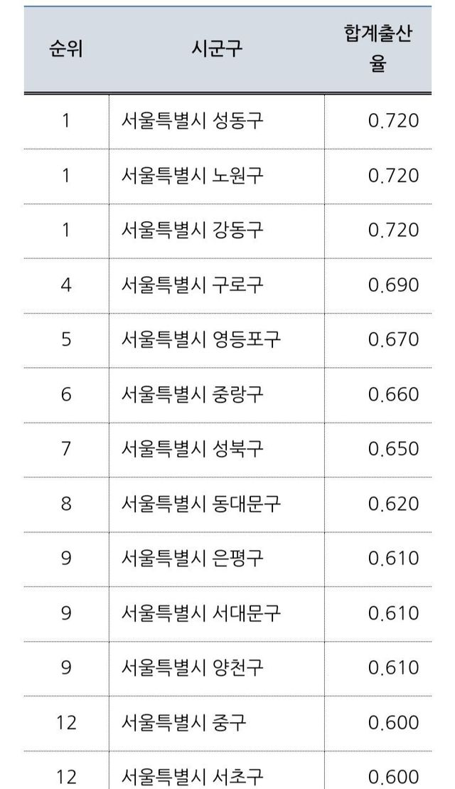 +반대로 도심권은 확실히 저출산기조가 강함. 특이한건 강북구가 최하위권인데 아마도 노인인구가 많아서 그런듯