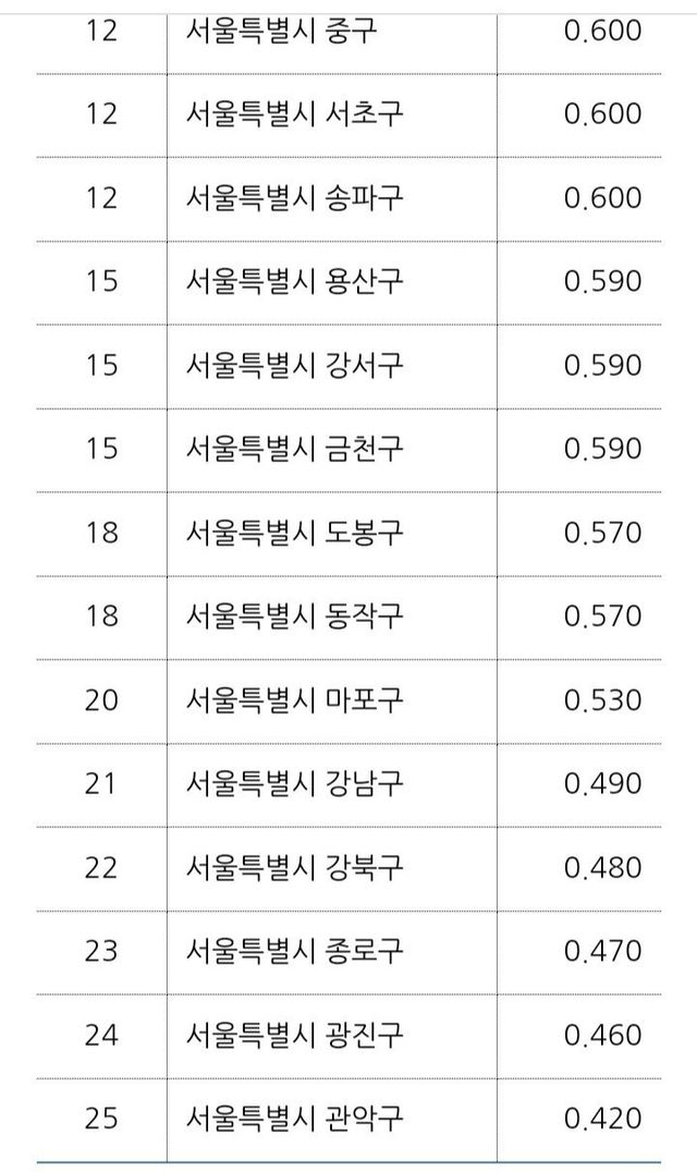 +중구는 이상하게 선방했고 광진 마포는 거의 바닥수준. 광진은 구도심의 낙후화라고 생각되는데 아현뉴타운 들어선 마포는 대체 왜?