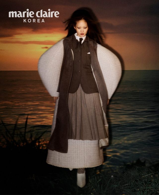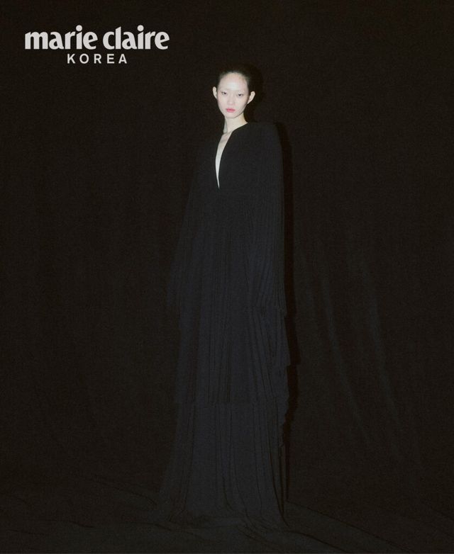 극적인 느낌의 플리츠 드레스, 안에 레이어드한 맥시 스커트 모두 가격 미정