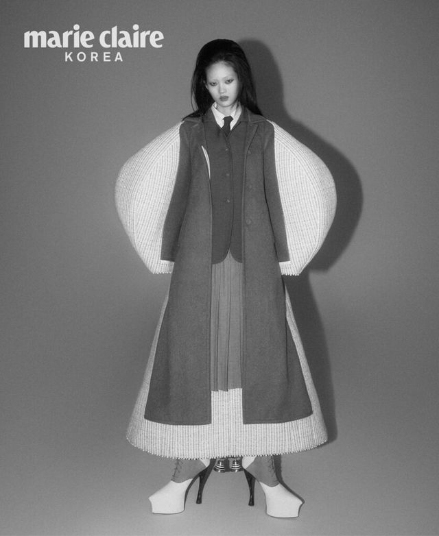 건축적인 실루엣의 올인원 코트, 종 장식이 독특한 슈즈 모두 가격 미정