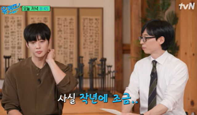 그룹 아스트로 멤버이자 배우 차은우가 ‘유퀴즈’에서 속내를 털어놓으며 울컥했다.