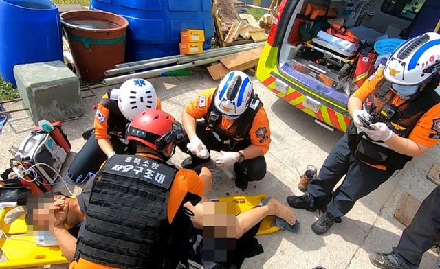 김 소방관 등 출동 소방관 3명은 업무를 나눠 부부의 기본 활력 징후를 체크하는 동시에 수용 가능한 병원을 알아봤다. 그러고선 곧장 건국대 충주병원 응급실로 향했다. 부부 중 아내는 병원 이송 중인 구급차에서 눈도 감지 못한 채 동공에서 빛이 사라지기도 했다. 잠시 기절하며 팔다리에 큰 발작을 일으키기도 했다.