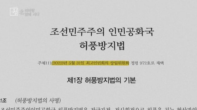북한정부는 요즘 이상 기후때문에 조심하자며 장마철에 경고방송을 내보냈지만 이걸로도 모자라서 새로 만든게 허풍방지법