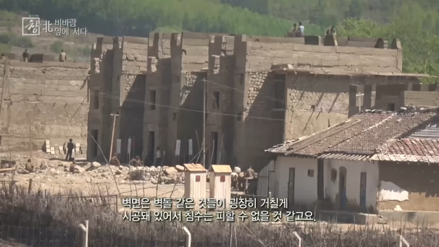 북한 사람들이 사람들이 살 건물을 만들고 있음
