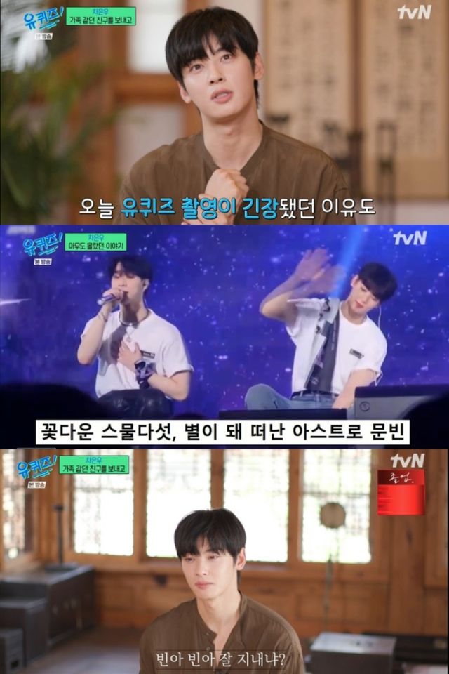 끝으로 차은우는 고 문빈을 향해 “빈아, 잘 지내냐. 보고 싶네. 너 몫까지 내가 할 수 있는 역할은 잘하고 있을게. 걱정하지 말고 다시 만나자”고 영상 편지를 보내 시청자들을 울렸다.