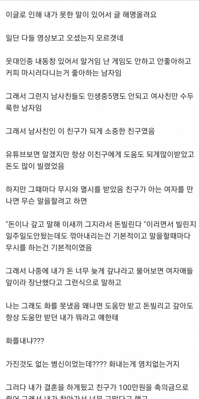 최근에 방송출연 짤이 커뮤 돌면서 욕하는사람도 있고하자 자기가 정확한 사건 전말 알려준다고 글씀