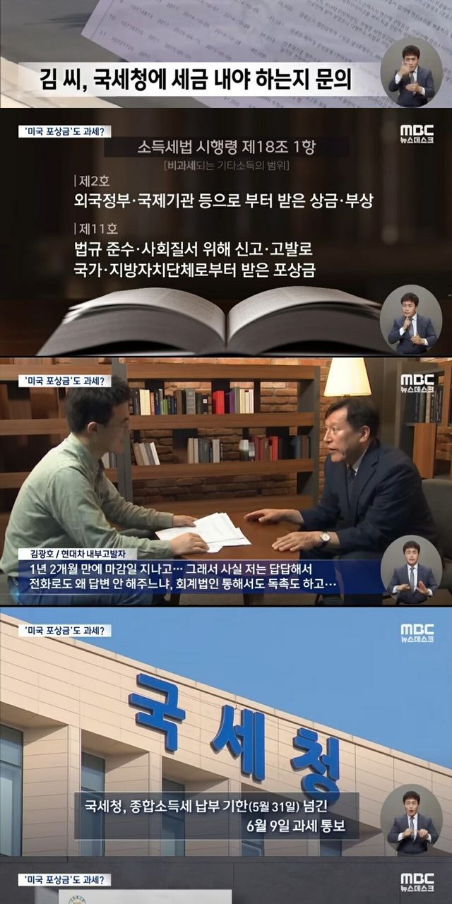 국세청은 해외 포상금은 선례가 없어 결정에 시간이 걸렸다면서, 과세 이유 등 개별 정보에 대해서는 답할 수 없다고 밝힘