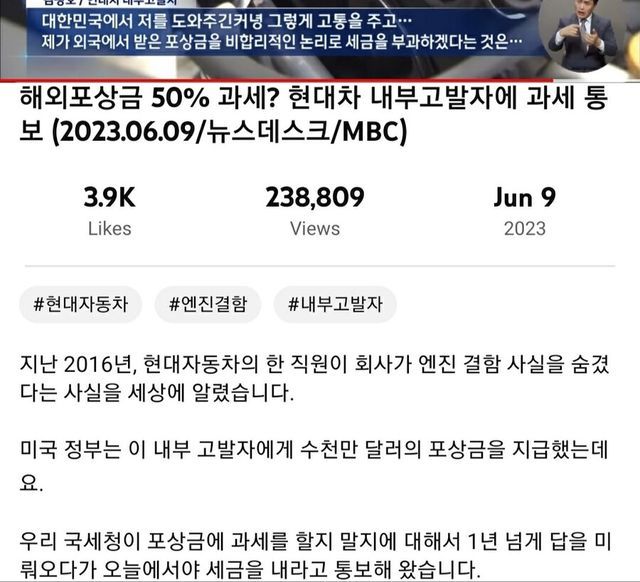 현대차 부장이던 김광호씨는 엔진에 결함이 있는걸 회사가 숨기고 있다고 폭로해서
