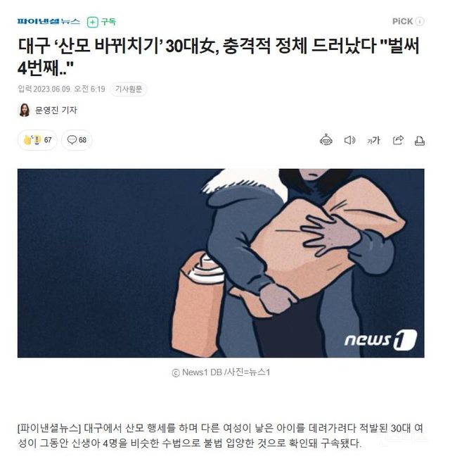 출처 : 대구 ‘산모 바뀌치기’ 30대女, 충격적 정체 드러났다 “벌써 4번째..” (naver.com)