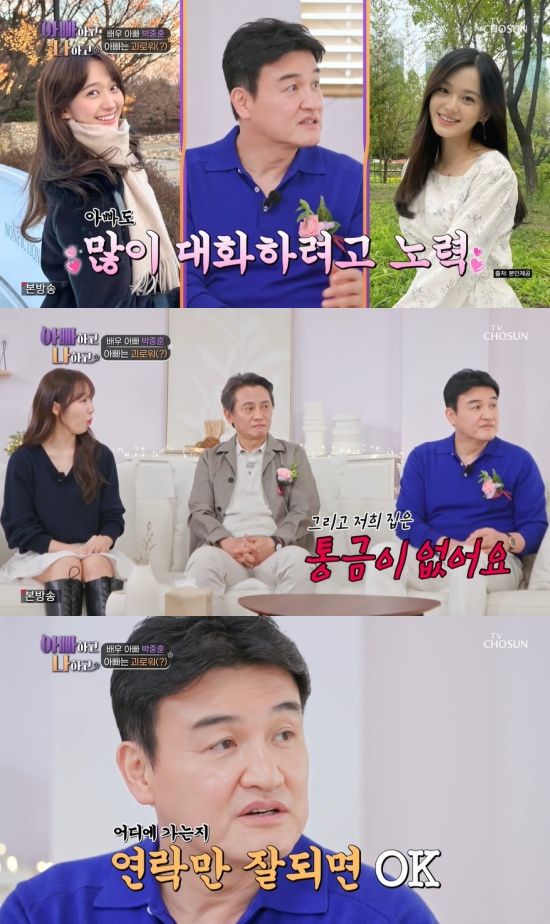 8일 방송된 TV조선 '아빠하고 나하고'에서는 박중훈이 신입 아빠로 출연한 김병옥의 가족 분위기에 공감하는 모습이 그려졌다.