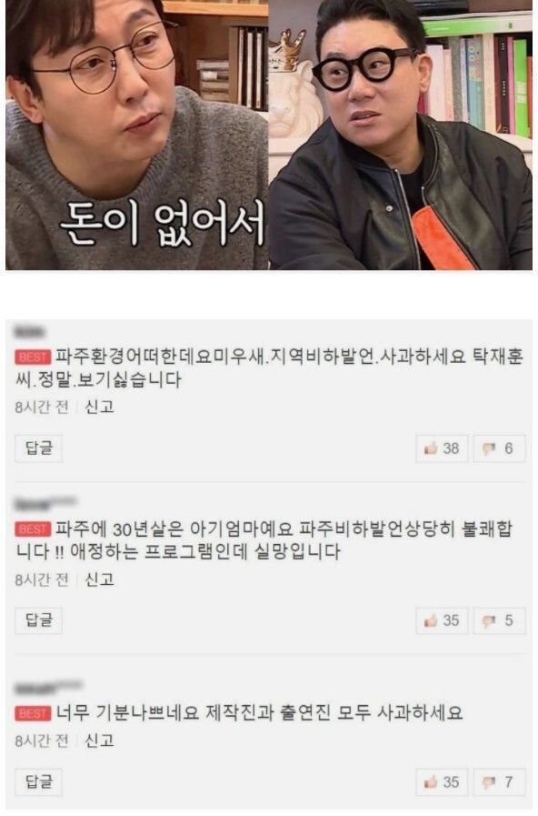 탁재훈 - "네가 선택한 게 아니라 어쩔 수 없이 온 거다. 돈이 없고 가진 게 없어서 여기로 온 거지 왜 선택했다고 하냐"