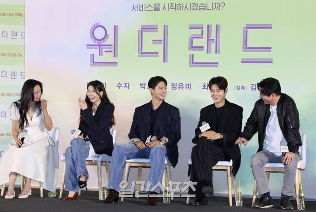 9일 오전 서울 용산구 CGV 용산아이파크몰에서는 영화 ‘원더랜드’ 제작보고회가 열렸다. 이 자리에는 메가폰을 잡은 김태용 감독을 비롯해 배우 탕웨이, 수지, 박보검, 최우식이 자리했다.