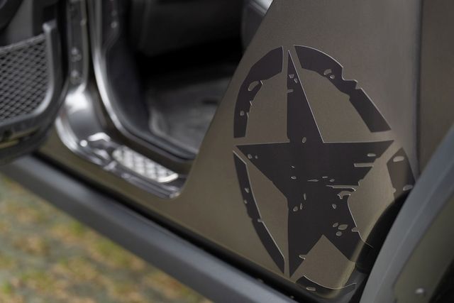 아미 스타 패키지는 후드와 양 도어 사이드 바디에 지프의 전통과 역사를 상징하는 별 모양이 거친 질감으로 표현된 데칼로 시선을 사로잡는다.