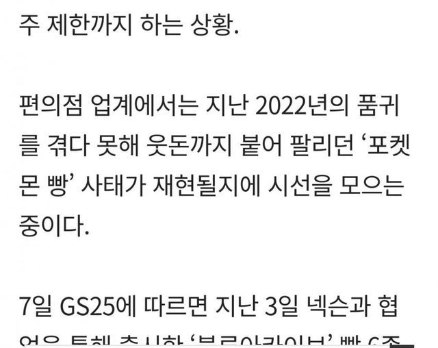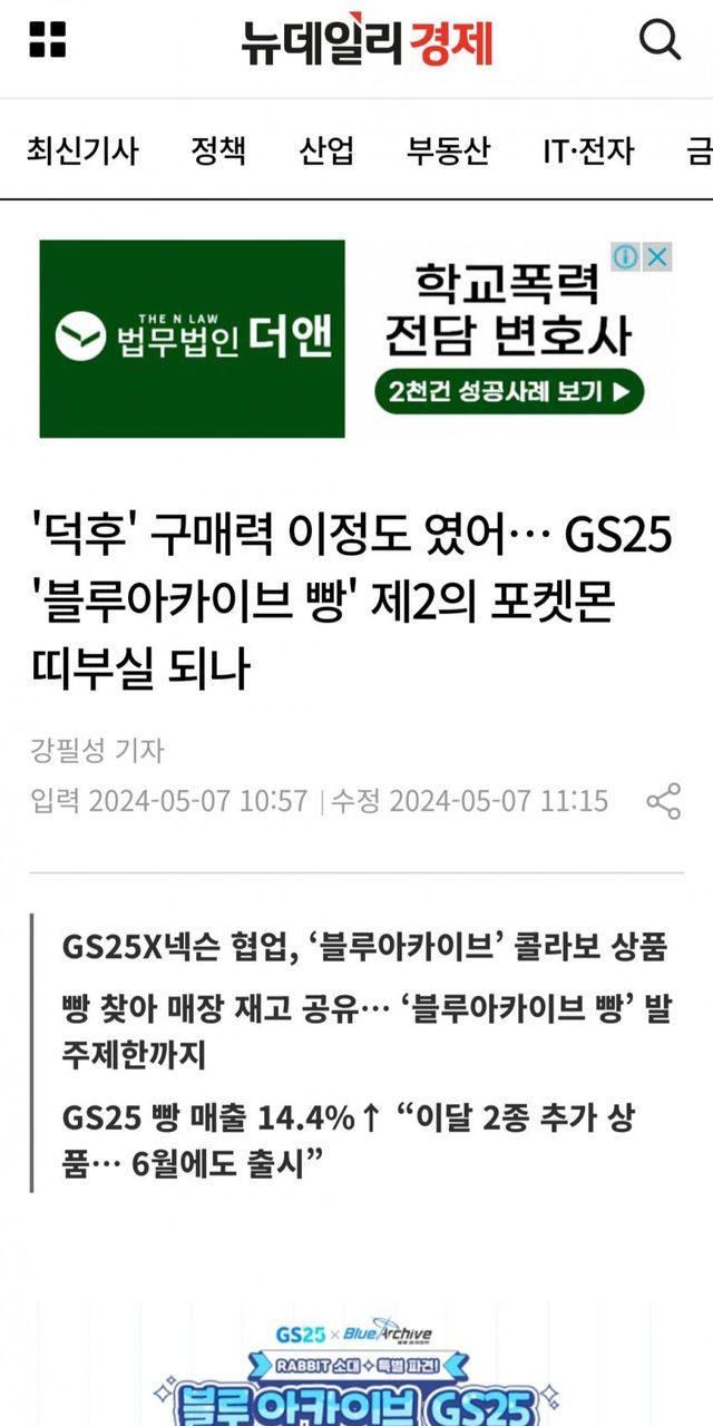 “‘블루아카이브 빵’ 언제 입고되나요?”‘블루아카이브’ 협업상품을 찾아 GS25를 배회하는 난민이 생기고 있다. GS25가 넥슨의 모바일게임 ‘블루아카이브’의 콜라보로 만든 빵 4종과 도시락 5종이 출시 직후부터 품귀를 겪고 있기 때문이다. 수요가 폭발하면서 GS25는 빵 제품 일부를 발주 제한까지 하는 상황.편의점 업계에서는 지난 2022년의 품귀를 겪다 못...