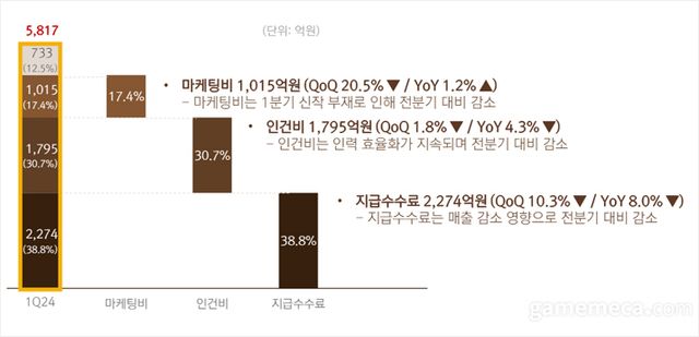 ▲ 넷마블 2024년 1분기 영업비용 구조 (자료출처: 넷마블 IR 페이지)