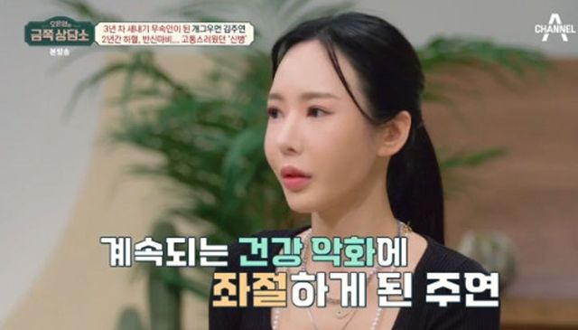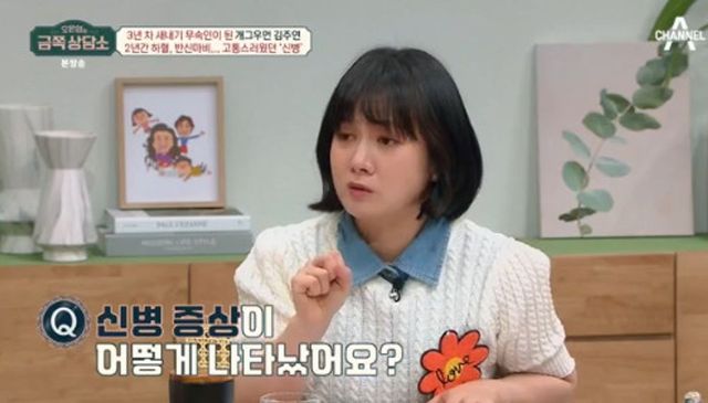 “신병으로 반신마비를 앓았다는데 신병 증상이 어떻게 나타났나?”라는 질문에 김주연은 “처음에는 낮에는 몸이 괜찮은데 밤이 되면 갑자기 열이 펄펄 나면서 아프다. 낮에는 또 멀쩡하다. 다시 약속을 잡으면 또 아프다. 나만 거짓말하는 사람이 되는 거다”라며 일상생활을 하기 힘들었다고 밝혔다.