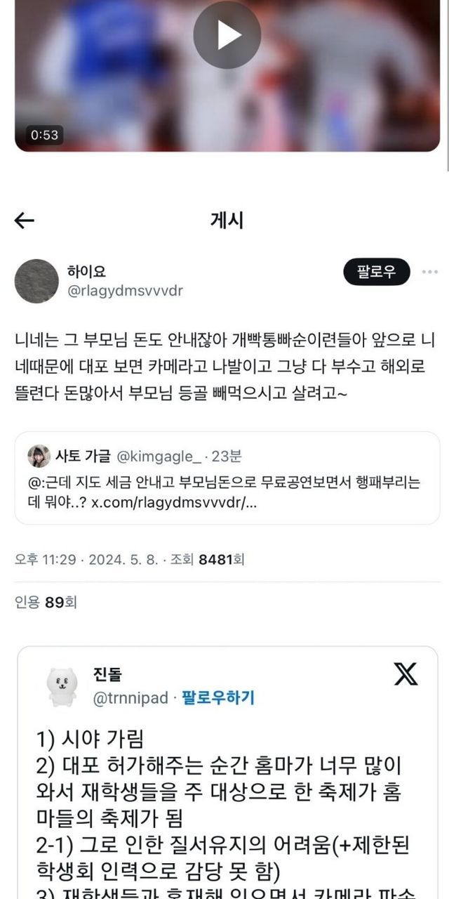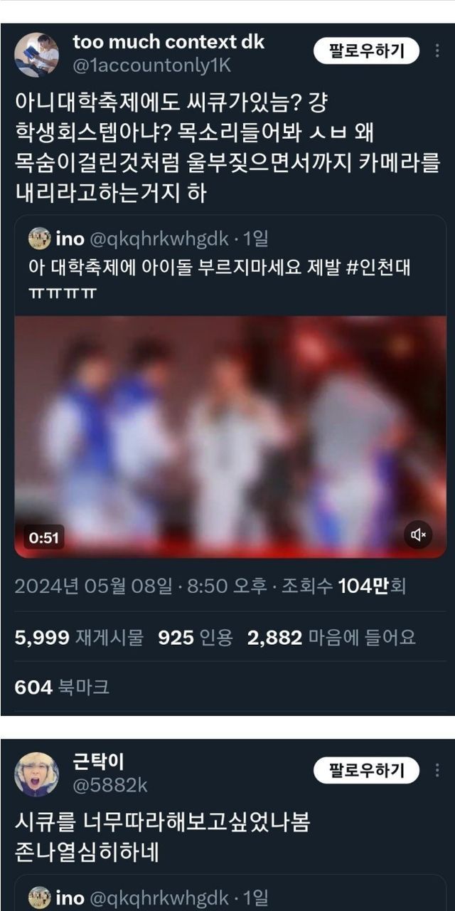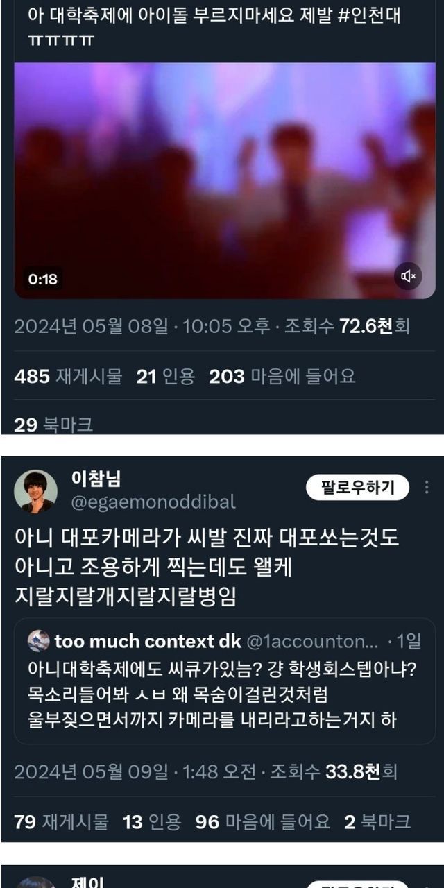 아니 학생회 스태프가 왜 소리 지르면서 카메라를 내리라고 함? (대학축제라 학생회가 운영진임)