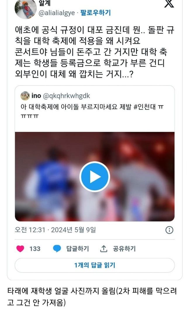 얼굴 박제까지 당한 인천대학교 재학생들 화 많이 날 듯