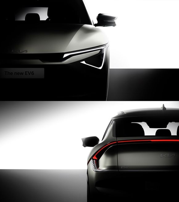 기아가 전동화 스포츠유틸리티차량(SUV) EV6의 상품성 개선 모델 '더 뉴 EV6' 티저 이미지를 공개했다. /기아