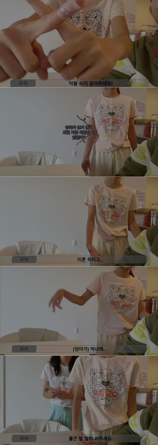 이때 유하 양은 "(엄마, 아빠) 이혼하라고"라면서 "(엄마가) 악녀래"라고 답했다. 그러면서 "좋은 말 많이 써주세요"라고 당부하기도 했다.