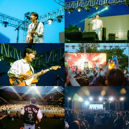 이승윤은 지난 9일 용인대학교 축제에 출격, 학생들과 특별한 시간을 보냈다. '게인 주의'로 오프닝을 연 이승윤은 '들려주고 싶었던', '날아가자', '비싼 숙취', '도킹' 등 대표곡 무대를 잇달아 펼쳤다. 뜨거운 호응 속 이승윤은 신나는 분위기의 곡들로 세트리스트를 꾸려 현장 분위기를 최고조로 달궜다.