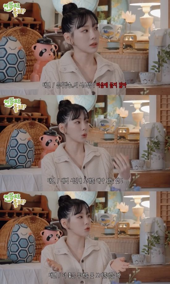 앞서 태연은 유튜브 채널 '동해물과 백두은혁'을 통해 '투엑스(To. X)' 활동 당시 음악방송을 하지 않은 이유를 밝힌 바 있다. 태연은 "음악방송의 시스템이 마음에 들지 않는다"고 운을 뗀 뒤 "이해 못 하는 건 아니지만 새벽 시간에 노래를 해야 하는 것도 사실 조금 배려가 없지 않나. 힘든 부분이 많다"고 토로했다.