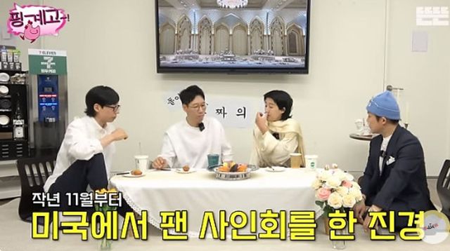 이에 홍진경은 미국 팬 사인회를 돌았던 것을 언급하며 “나 놀랐다. ‘저 남자가 왜 여기 줄서있지? 그런 남자가 너무 많다. 하버드 대학 다니는 이런 친구들이 줄 서 있다”라고 주장했다. 이에 조세호는 “누나가 재밌고 좋으니까 사인 받는 거 아니냐”라고 말했고 유재석은 “잘생기고 멋지고를 떠나서 그냥 맹구가 오든 영구가 오든 좋아하는 사람이 오면 그냥 온다는 거다”라고 말했다.