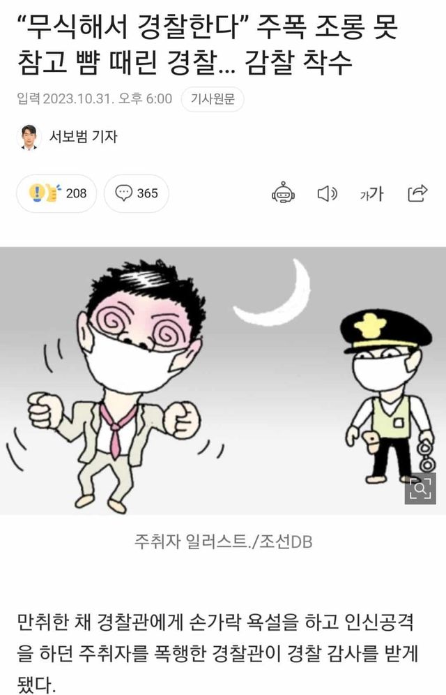 “무식해서 경찰한다” 주폭 조롱 못 참고 뺨 때린 경찰