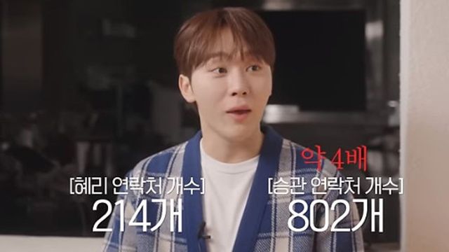 이어 부승관은 휴대폰을 꺼내 연락처에 802개가 저장되어 있다고 밝혀 혜리를 깜짝 놀라게 했다. 부승관은 “근데 여기서 연락하는 사람은 진짜 많이 없다”라고 털어놨다. 혜리는 자신의 휴대폰 속 연락처 개수가 214개라고 공개했고 부승관은 “내가 약 네 배다”라고 말했다.