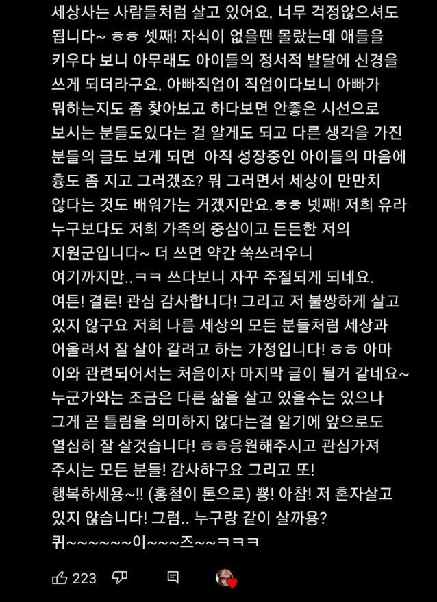 그런데 유튜브 댓글은 아직 정형돈이 불쌍하다가 더 많은 상황이네요.