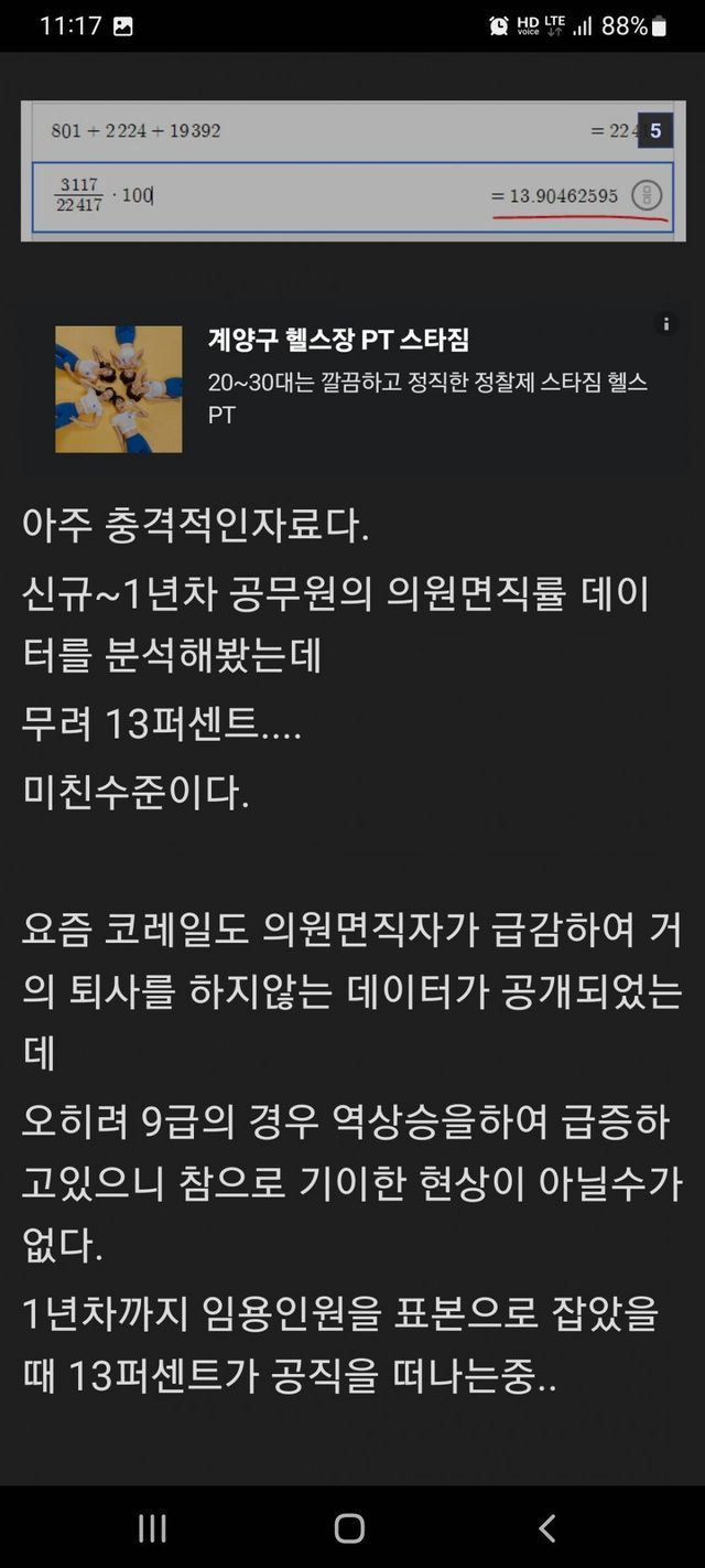면직률이 말해주긴 하는데 공무원 이제 정말 아닌것 같아