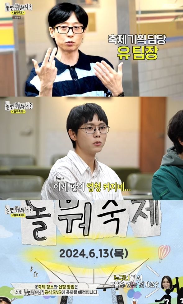 이날 축제 중간 점검에 나선 유재석은 역대급 축제 라인업을 자랑했다.