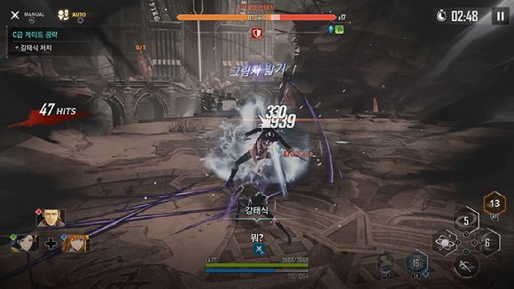 전투는 수동 모드와 세미 오토, 오토 모드로 나뉘지만, 대부분 수동 전투를 즐길 만큼 플레이에서 오는 재미가 상당했다. 특히 모바일 환경이 아닌 PC 환경에서 패드를 사용할 시에는 타격마다 오는 진동으로 인해 손맛까지도 느낄 수 있었다.