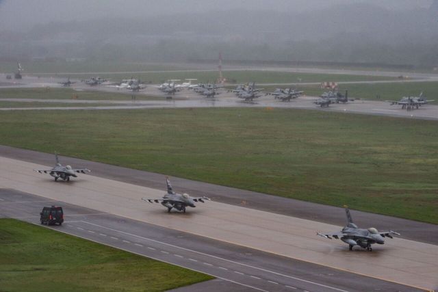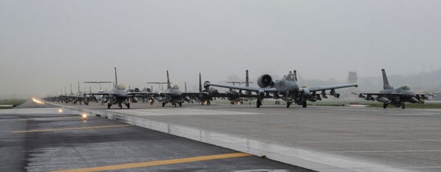 오산공군기지에 주둔하는 미 제7공군 소속 제8전투비행단과 제51전투비행단이 엘리펀트 워크 훈련을 실시함.