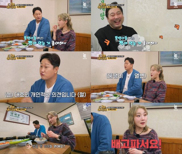 연신 고추장을 찍어 오이를 먹는 멤버들을 보며 이대호는 "꼭 찍어 먹는 사람들 보면 뚱땡이들이 잘 찍어 먹는다. 찍어 먹는 것 좋아하는 사람들 보면 대부분 다 뚱땡이다"라고 엄청난 발언을 하는데. 멤버들은 아무런 말도 하지 못하고 서로를 쳐다보며 멋쩍은 웃음을 지었다.