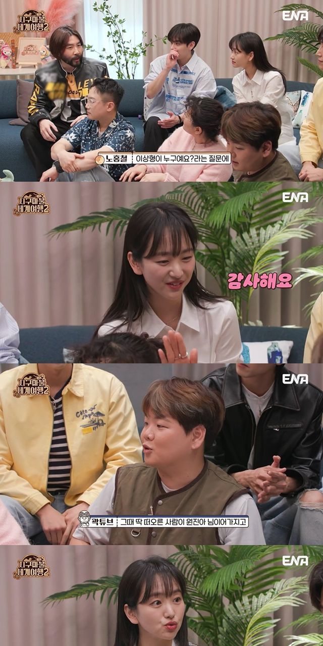 이날 노홍철은 원진아의 등장에 “곽튜브가 처음 프로그램을 시작할 때 원진아 씨를 이상형으로 언급했다”고 말을 꺼냈다. 곽튜브는 “감사하다”며 인사하는 원진아의 눈도 제대로 못 쳐다보고 수줍어했다. 이어 원진아는 실제로 곽튜브를 만나보니 어떠냐는 질문에 “직접 보니까 포스 있다”고 말해 곽튜브의 마음을 두근거리게 했다.