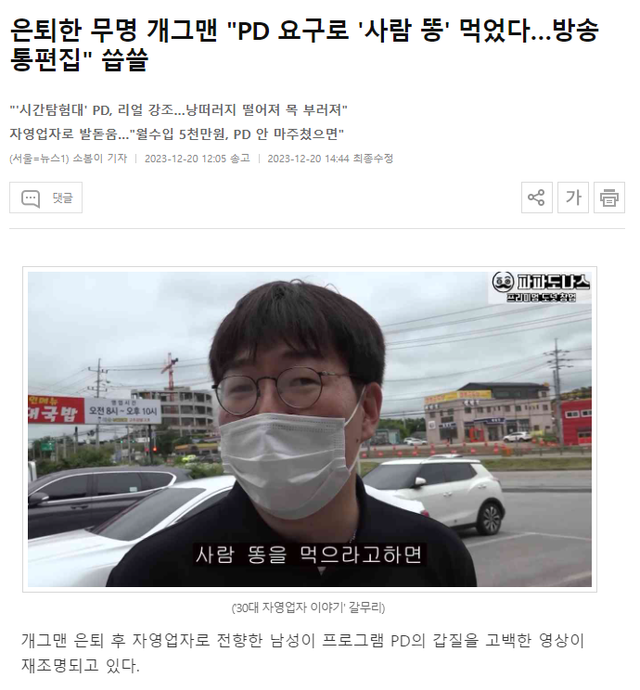 무명으로 10년 활동하다가 이런저런일 겪고 (똥 먹인건 시간탐험대 라는 프로그램)