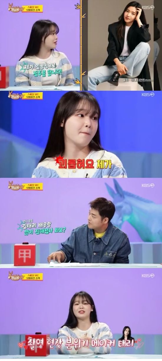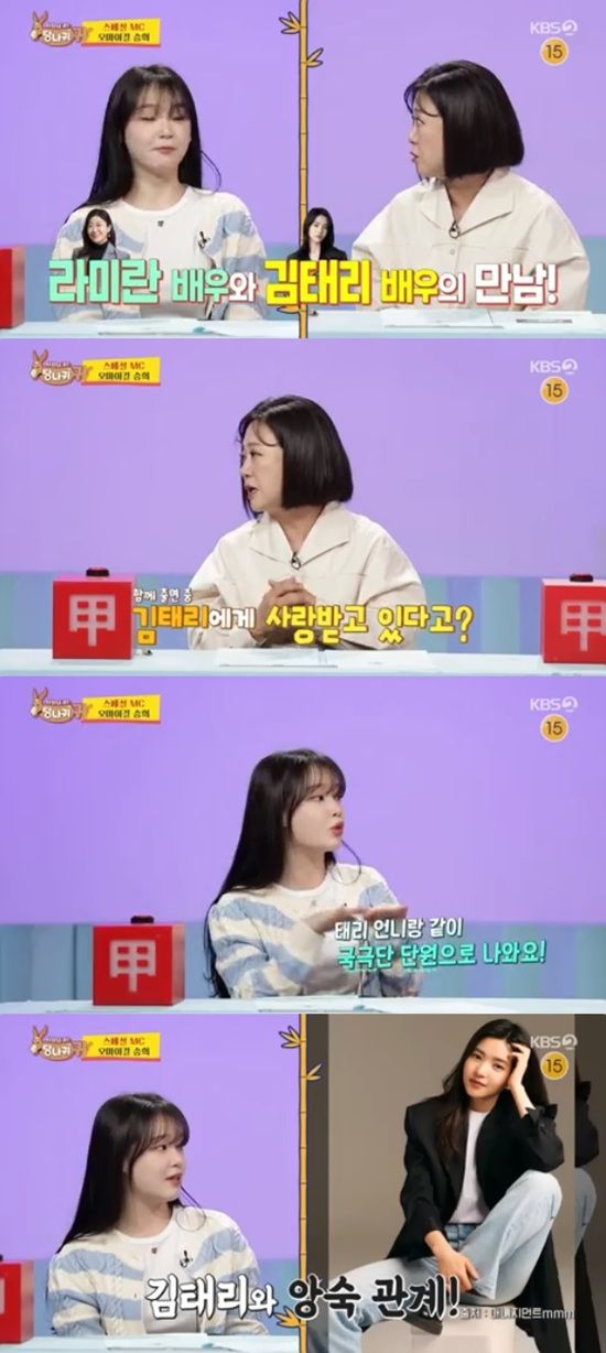 이날 MC 김숙은 승희가 최근 드라마에 캐스팅 돼 배우 라미란, 김태리와 함께 촬영 중이라는 소식을 전했다.