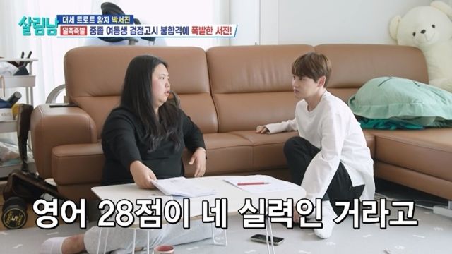 특히 영어는 28점을 받아 충격을 안겼다. 박서진은 "어떻게 이 많은 시험 중에서 영어를 제일 못 볼 수 있냐. 영어 과외까지 시켜놨더니"라며 "나는 너 공부하는 거 본 적이 없다. 책도 깨끗하고 뭘 공부한 거냐. 영어 28점이 네 실력인 것"이라고 실망감을 감추지 못했다.