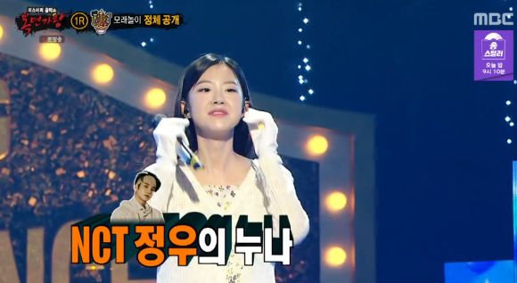 [조이뉴스24 김양수 기자] '복면가왕' 모래시계가 2라운드에 진출한 가운데, 모래놀이의 정체가 공개됐다. 모래놀이는 NCT 정우의 누나인 배우 김민아였다.