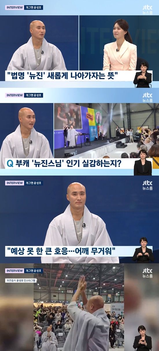 12일 'JTBC 뉴스룸'에는 법명 '뉴진스님'으로 활동중인 개그맨 윤성호가 출연했다.