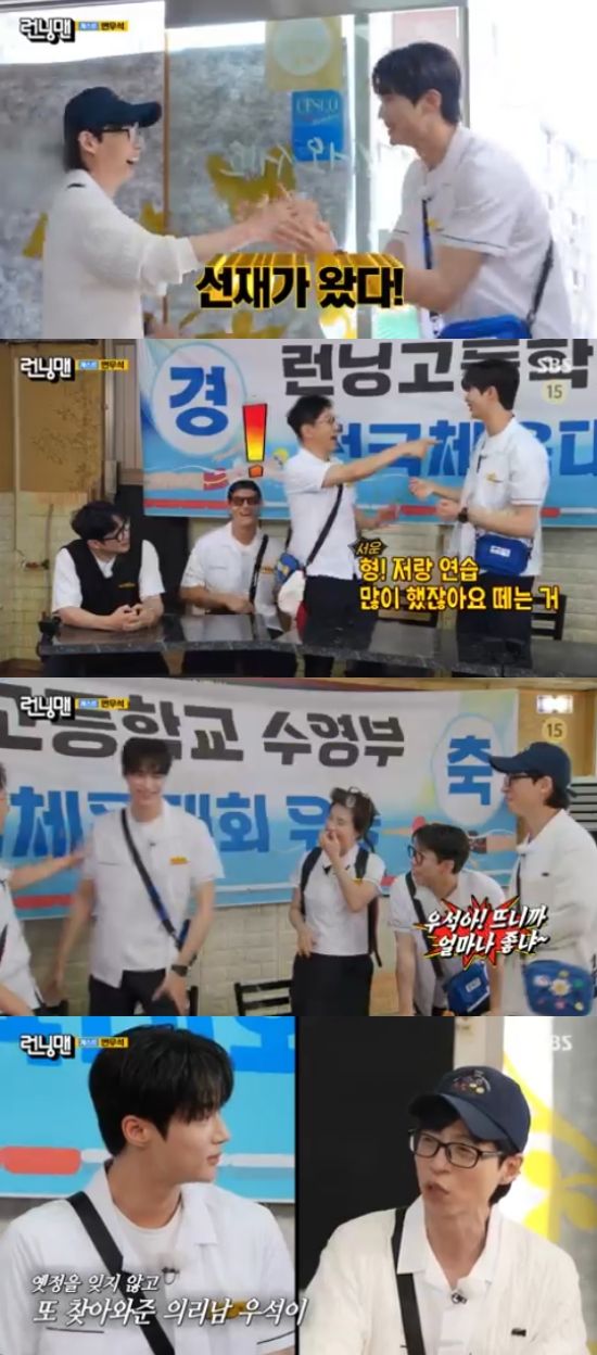 지석진은 "너가 떴으니까 여기 나오는거다"라고 했고, 나머지 '런닝맨' 멤버들은 "예전에도 나오지 않았냐"고 깜짝 놀랐다. 이에 변우석은 "기억을 못하시는 것 같다. 저랑 같이 이름표 떼는 것 연습 많이 하지 않았냐"고 했고, 지석진은 "아! 그게 너구나?"라면서 당황해 웃음을 줬다.